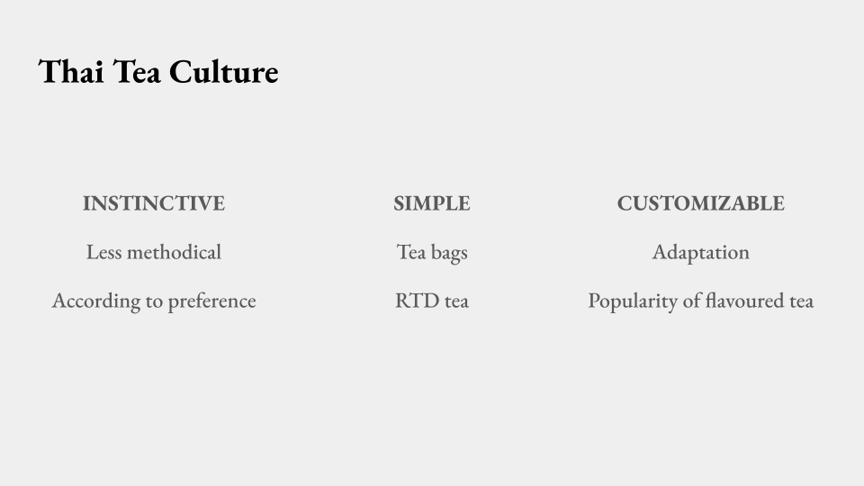 A tea tumbler that introduces an alternative way for young Thai adults to enjoy tea by focusing on instinctive brewing gestures, personalized taste, and casual user experience. With this design, user can brew their own tea by shaking. The gesture and design answer to user values of convenience and personalization.